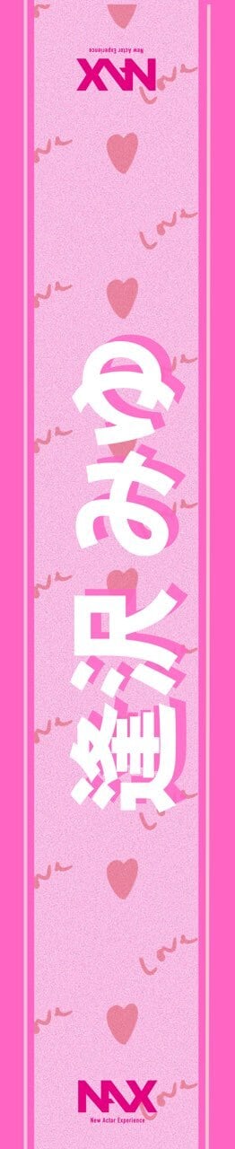 ピンクを基調にしたポップでキュートな配色に、メッセージ性のある縦書きの文字が印象的。