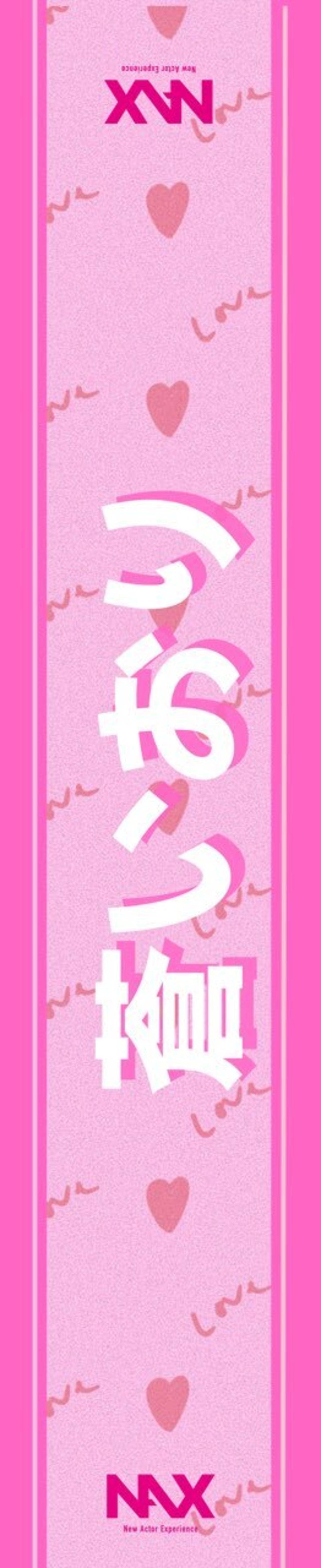 ピンクを基調にしたポップでキュートな配色に、メッセージ性のある縦書きの文字が印象的。