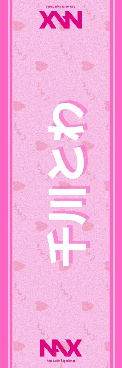 ピンクを基調にしたポップでキュートな配色に、メッセージ性のある縦書きの文字が印象的。