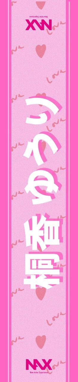 ピンクを基調にしたポップでキュートな配色に、メッセージ性のある縦書きの文字が印象的。