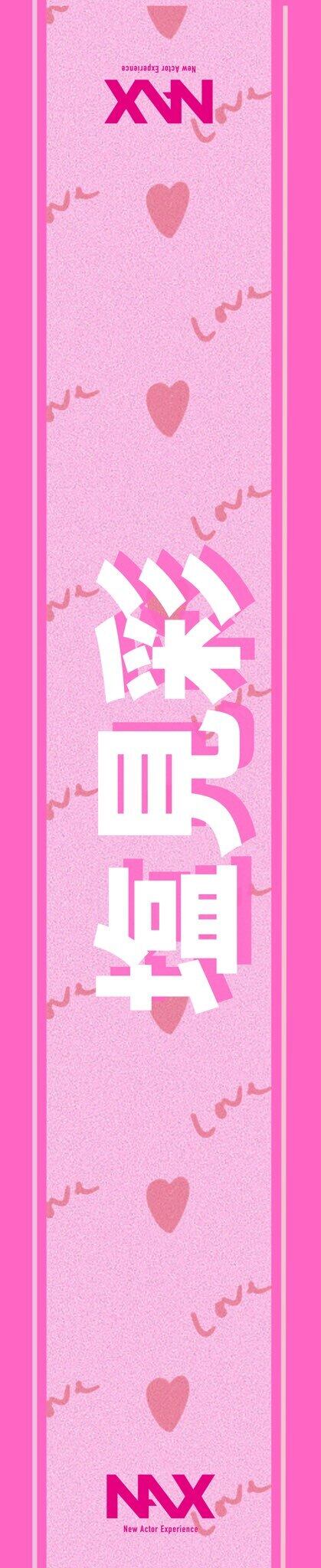 ピンクを基調にしたポップでキュートな配色に、メッセージ性のある縦書きの文字が印象的。